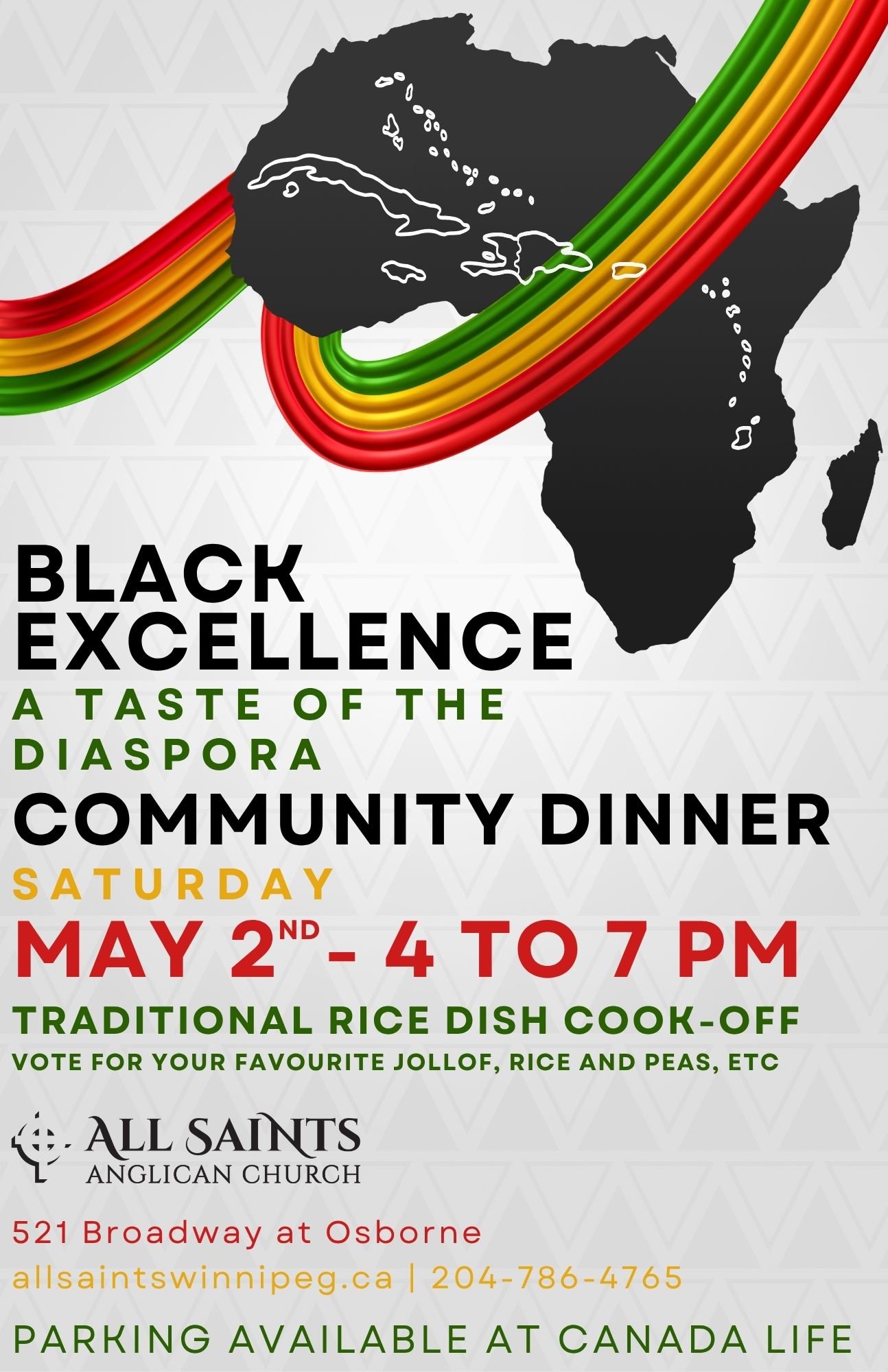 On Saturday, May 2, 2026 from 4:00 to 7:00 pm, in the nave, the African and Caribbean members of All Saints are hosting our third annual Black Excellence Celebration, featuring an array of traditional food and drinks, stories, and music.