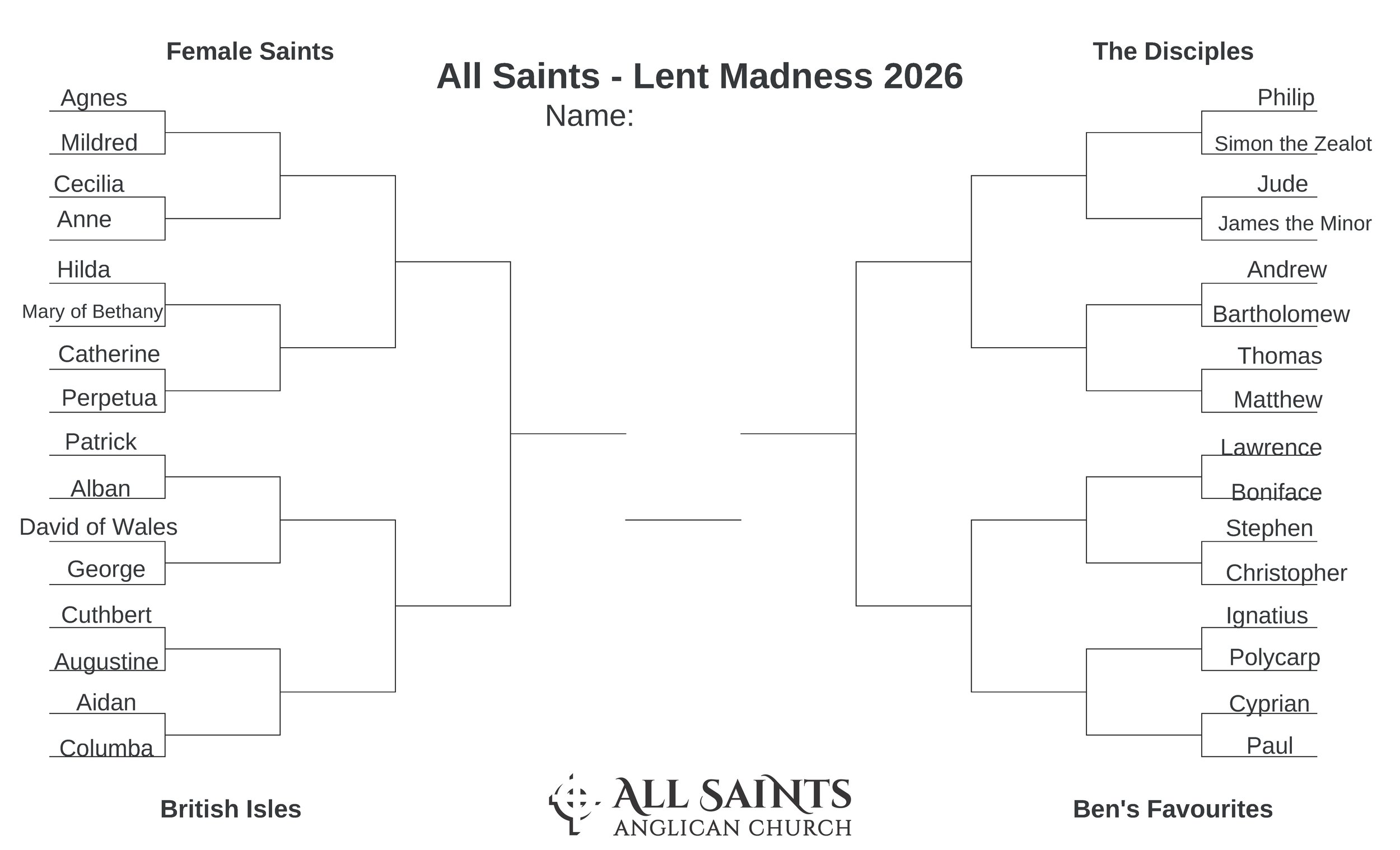 Starting on March 1, ballots will be available after each service. Choose your favourite from each of the sixteen matchups (see below).