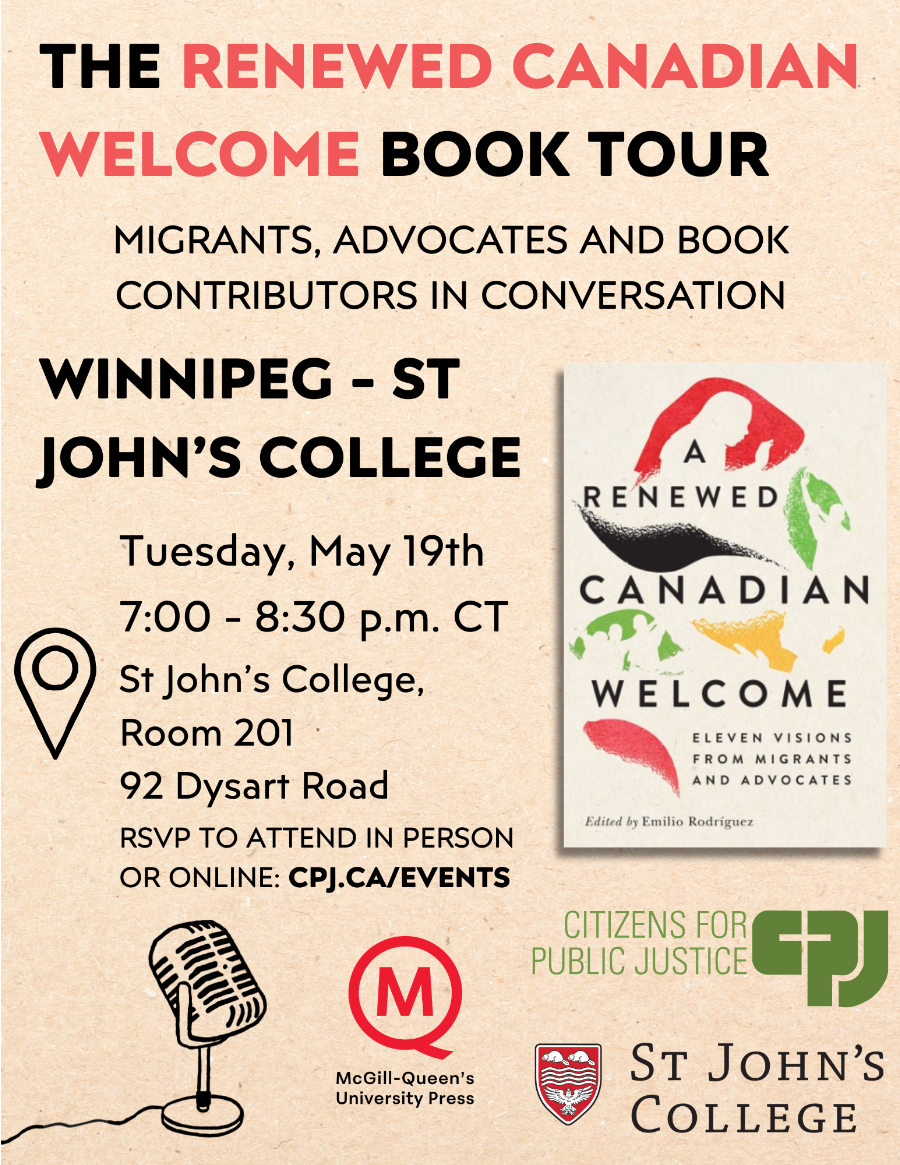 Join us for the launch of an exciting new book on migrant justice out this spring with McGill-Queen's University Press. St John’s is pleased to partner with Citizens for Public Justice (CPJ) to host this conversation. If your church engages in refugee ministry or is just interested in being a better community partner for new immigrants, you won’t want to miss this. This event is in person and will also be livestreamed.